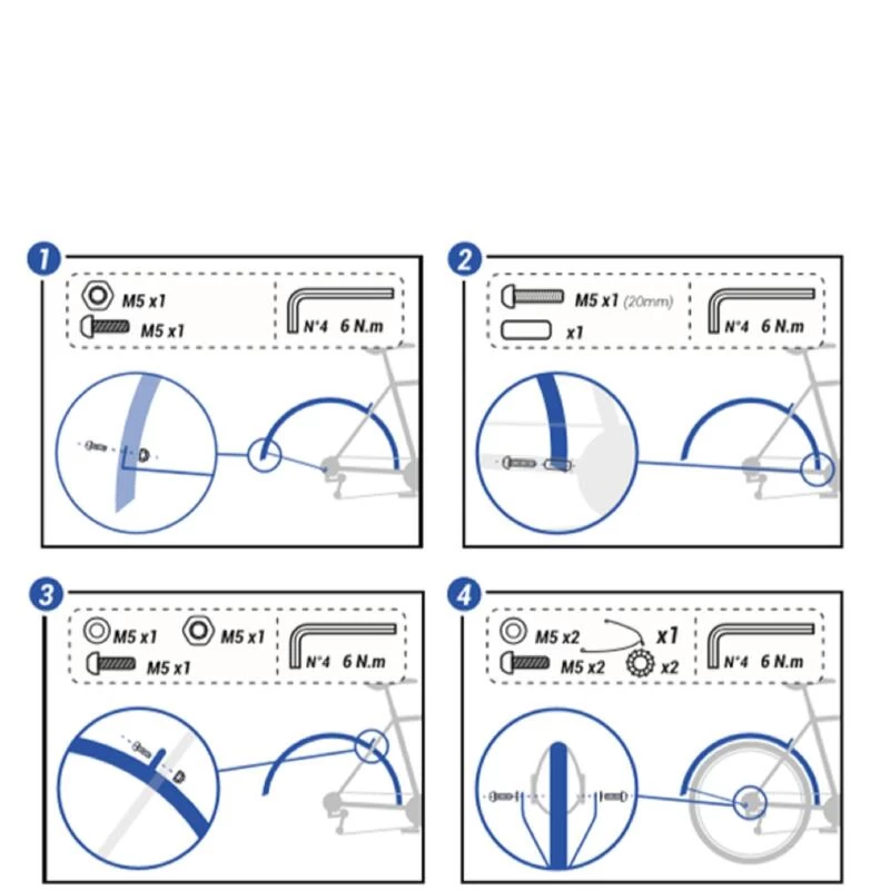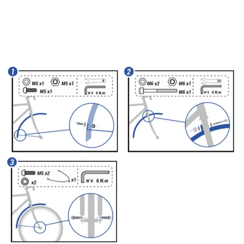 Les vis de cadre et fourche ne sont pas fournis avec la paire de garde-boue.