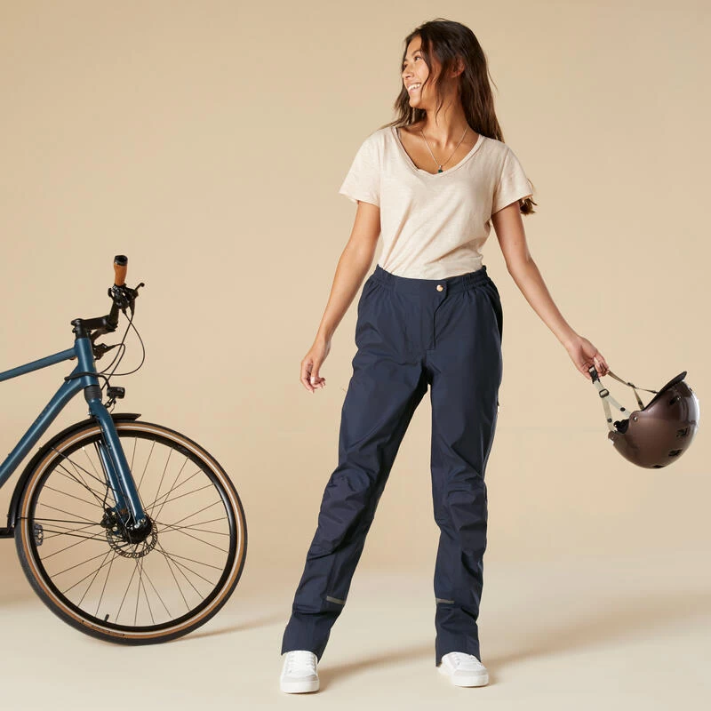 Vous vous déplacez par tous temps à vélo et souhaitez protéger vos jambes de la pluie? Ce surpantalon imperméable femme a été conçu pour vos trajets quotidiens.Protégez-vous des intempéries avec ce surpantalon imperméable qui s’enfile facilement : double zip étanche avec grande ouverture latérale, tissu résistant et respirant.
