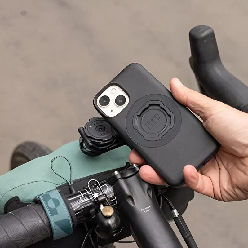 Protégez votre iPhone partout avec cette coque ultra-résistante ! Fixez-la facilement et en sécurité sur bras, vélo, moto, scooter, bateau ou voiture avec les supports Quad Lock.