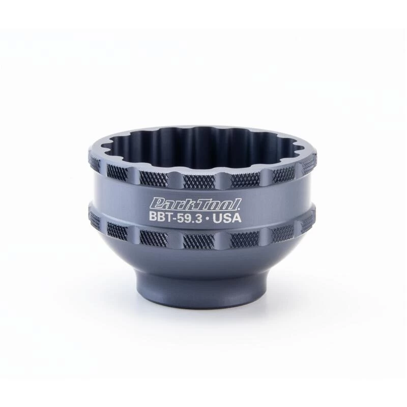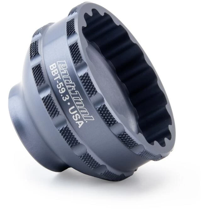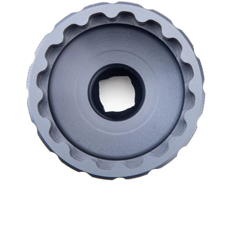 Un outil de précision en aluminium usiné CNC pour le montage et le démontage d’une sélection de roulements de pédalier filetés avec un raccord à 16 encoches.