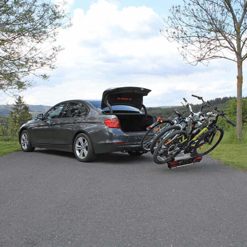 Le porte-vélos Strada DL 3 de marque Atera est conçu pour le transport de 3 vélos et même 4 vélos si une extension optionnelle est commandée.