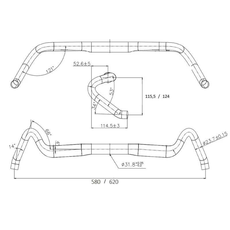 Reach : 52,6mm / Flare : 24° / Sweep : 4° / Drop : 115,5mm