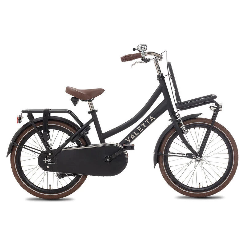 Le vélo de ville Valetta Cargo avec porte-bagages avant pratique est le vélo parfait pour les enfants scolarisés. Design intemporel, cadre robuste, selle confortable et éclairage LED lumineux.