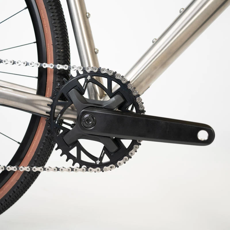 Nous avons conçu et testé ce vélo Gravel Titane pour vos sorties les plus longues. C’est l’évasion en suprême confort sur les graviers et chemins roulantsCe vélo Gravel Titane est probablement le plus confortable des vélos que nous ayons conçu. Cadre Titane 3AL 2.5V , fourche et pivot carbone, roues Fulcrum RR900 Tubeless.